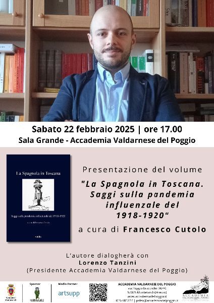 Sabato 22 febbraio, alle ore 17:00 nella Sala Grande dell’Accademia Valdarnese del Poggio, sarà presentato il volume “La Spagnola in Toscana. Saggi sulla pandemia influenzale del 1918-1920” curato da Francesco Cutolo.