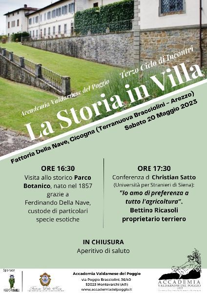 Arriva alla terza edizione la serie di conferenze ‘La Storia in Villa’, promossa dall'Accademia Valdarnese del Poggio, nelle quali saranno trattati approfondimenti storici sulle vicende del Valdarno e della Toscana, attraverso i secoli, in luoghi che portano ancora il segno di quella storia.
