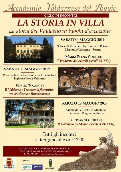 Nel mese di Maggio, nei giorni di Sabato 4, Sabato 11 e Sabato 18 si terrà un ciclo di incontri su La storia del Valdarno che sarà raccontata in luoghi d’eccezione.