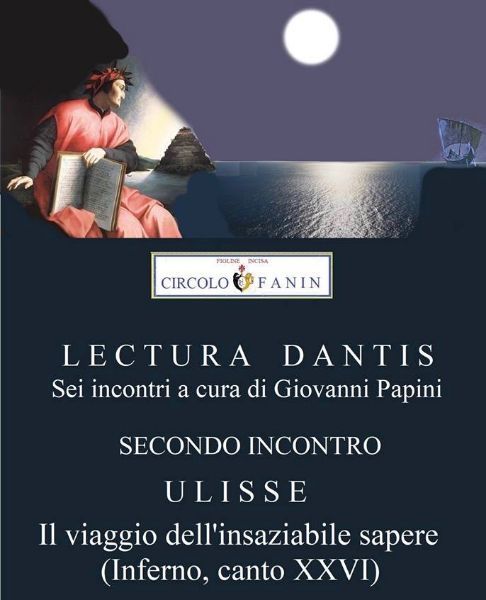 L’appuntamento è per Giovedì 25 Ottobre alle 17,30 con la lettura del Canto XXVI dell’Inferno dedicato a Ulisse e incentrato sul viaggio dell’insaziabile sapere.