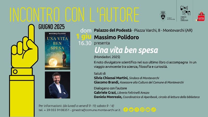 Domenica 1 giugno,presso il Palazzo del Podestà, Piazza Varchi 8 - Montevarchi (AR), appuntamento alle ore 16.30 con MASSIMO POLIDORO, che presenterà: Una vita ben spesa (Mondadori, 2025)