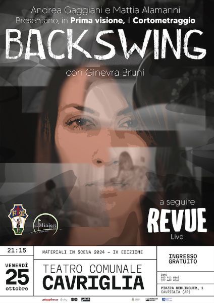 Iniziamo venerdì 25 ottobre con un evento speciale: la prima visione del cortometraggio “Backswing”, realizzato da due giovani cineasti cavrigliesi, Andrea Gaggiani e Mattia Alamanni: poco più di 15 minuti con Ginevra Bruni come protagonista e la colonna sonora dei Revue. Il progetto è stato sostenuto dal Comune di Cavriglia e realizzato con la collaborazione del Golf Club Le Miniere e della Misericordia di San Giovanni Valdarno Sez. Cavriglia. Dopo la presentazione e la proiezione seguirà il concerto dei Revue.