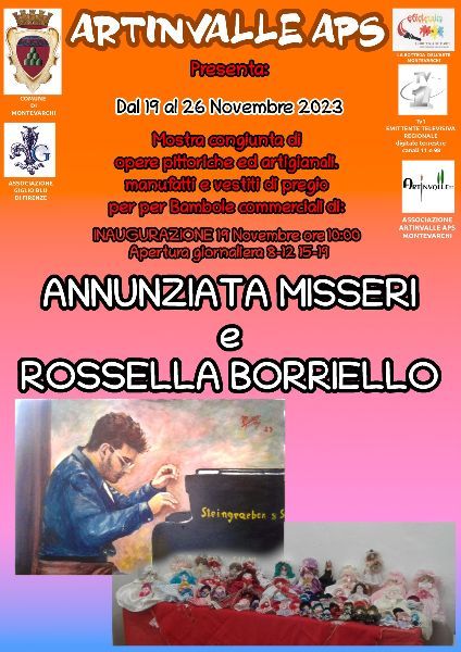 L'associazione Artinvalle APD, presenta una doppia mostra di opere di Annunziata Misseri e Rossella Borriello in Via Roma 43, Montevarchi, Arezzo.