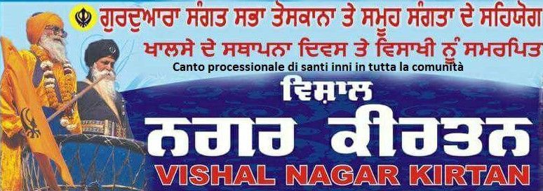 Il Nagar Kirtan, in cui la parola “Nagar” significa città, mentre Kirtan indica il canto degli Shabads, (inni religiosi), inizia quando i 5 Amati guidano il corteo, chi vi partecipa trova conforto e pace, anche quando si è in migliaia e si cammina insieme.