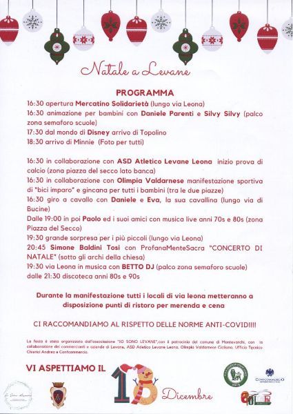 La festa è stata organizzata dall'associazione "I0 SONO LEVANE", con il patrocinio del comune di Montevarchi, con 1a colloborazione dei commercianti e aziende di Levane, ASD Atietico Levane Leona, Ofimpia Vaidarnese Ciciismo, Ufficio Tecnico Chierici Andrea e Confcommercio.