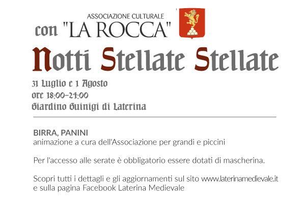 Presso il giardino Guinigi di Laterina, in sostituzione della tradizionale festa medievale, rimandata a causa COVID 19, L'associazione La Rocca presenta Notti Stellate Stellate