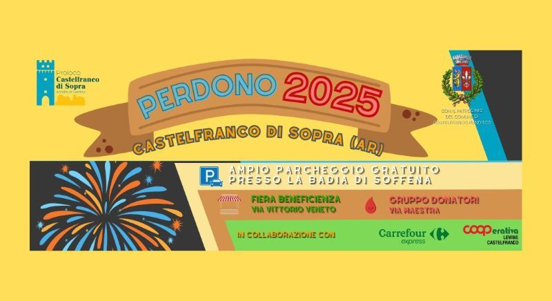 Oggi Venerdì 28 Agosto parte il Perdono di Castelfranco di Sopra Organizzato, sei giorni di festeggiamenti organizzati dalla Pro Loco di Castelfranco di Sopra con il patrocinio del Comune, dove il borgo si animerà di eventi culturali, sportivi, religiosi e gastronomici: tra mostre fotografiche, mercatini vintage, tornei sportivi, spettacoli musicali e fuochi d’artificio.