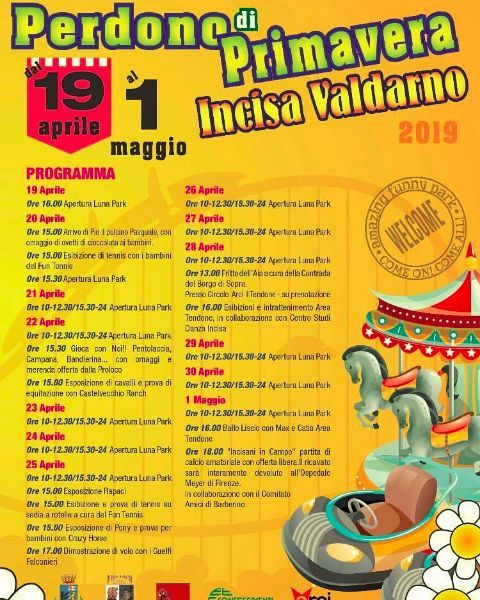 Dal 19 Aprile al 1° Maggio Incisa Valdarno ospiterà il “Perdono di Primavera” una novità nel calendario di eventi primaverili in programma a Incisa Valdarno, che porterà nel centro del paese sport, giochi, musica, luna park, balli e tante altre attrazioni dedicate a grandi e piccini: