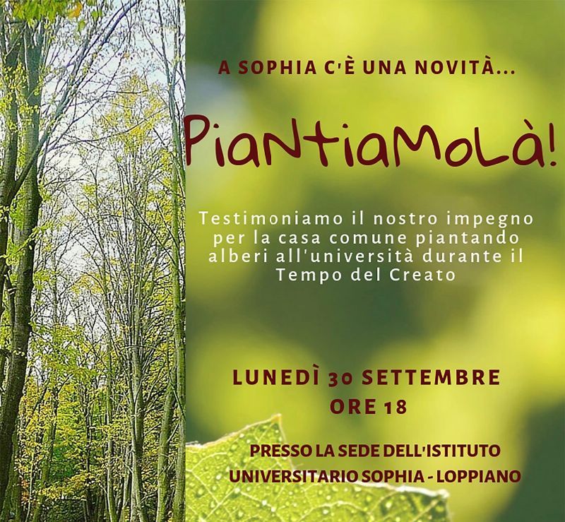 La Comunità Accademica di Sophia, in occasione de “Il Tempo del Creato”, invita tutti a partecipare per contrastare l’emergenza climatica, piantando alcuni alberi come simbolo d’impegno.