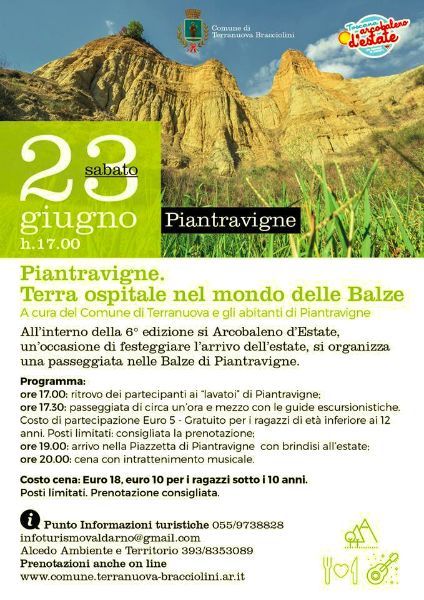 Sabato 23 Giugno, a Piantravigne frazione di Terranuova Bracciolini, torna l’appuntamento con “Terraospitale” che, per il terzo anno consecutivo, viene proposta nell’ambito dell’iniziativa “Arcobaleno d’Estate”, promossa dalla Regione Toscana per risaltare le eccellenze del territorio regionale, le ricchezze artistiche, il patrimonio naturalistico, le tradizioni e la gastronomia tipica.