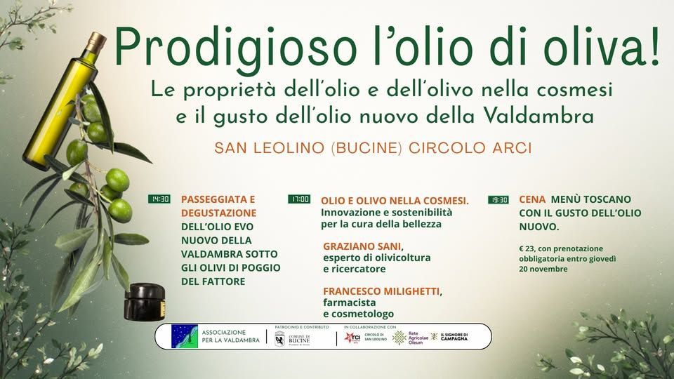 Sabato 22 Novembre a San Leolino un appuntamento per festeggiare l'olio EVO 2025 in Valdambra, terra di olii extra vergini di grande qualità, trascorrendo insieme mezza giornata piena di iniziative alla portata di tutte e tutti.