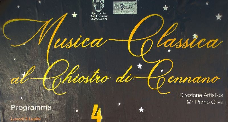 Con la direzione del maestro Primo Oliva, si rinnova la rassegna di Musica Classica al Chiostro di Cennano per l'estate 2022; ai parte lunedì 4 Luglio per quattro setrate che si terranno a partire dalle ore 21.30.