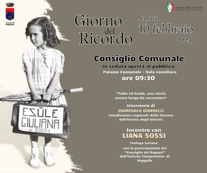 Il Comune di Reggello commemora il Giorno del Ricordo, sabato 10 febbraio, con un Consiglio Comunale aperto al pubblico.