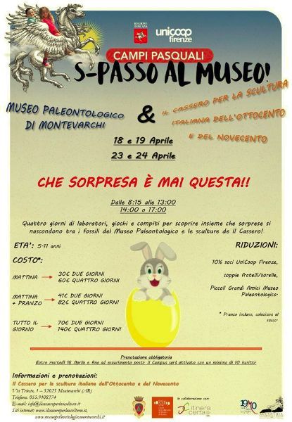 Nel periodo di Pasqua, presso il Museo Paleontologico e il Cassero per la Scultura di Montevarchi, sono state organizzate quattro giornate di campi pasquali dedicati ai bambini dai 5 agli 11 anni.