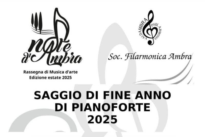 L'associazione Culturale Musicale Valdambra Philarmonia e Società Filarmonica di Ambra Presentano giovedì 19 giugno ore 21.00 SAGGIO DI FINE ANNO DI PIANOFORTE 2025, Rassegna di Musica d'arte Edizione estate 2025