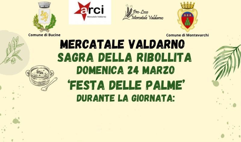 Domenica 24 marzo, in occasione della domenica delle palme, il circolo ARCI e la Pro-loco di Mercatale, vi invitano alla Sagra della Ribollita; Stand Gastronomico, mercatino parco divertimenti per tutti i bambini e tanto altro