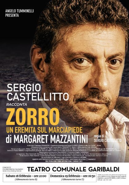 Sergio Castellitto torna al Teatro comunale Garibaldi per riportare in scena lo spettacolo che 22 anni fa lo vide debuttare sul palco figlinese: sabato 18 e domenica 19 febbraio sarà il protagonista unico di “Zorro”, il monologo teatrale scritto proprio per lui dalla moglie Margaret Mazzantini; testo nato per il teatro ma pubblicato anche come testo letterario a sé stante.
