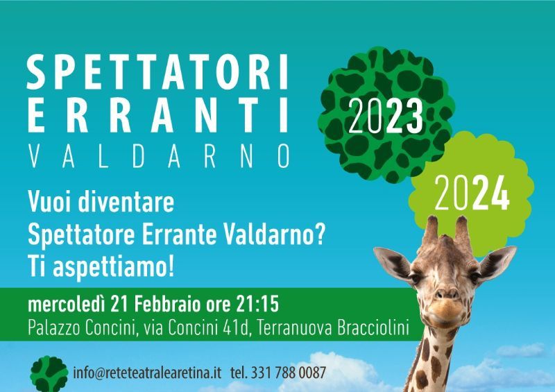 Gli spettatori erranti del Valdarno è un gruppo in viaggio tra i teatri del Valdarno aretino alla ricerca degli spettacoli più originali, per conoscersi, confrontarsi con gli artisti e scoprire insieme le proposte culturali del territorio.