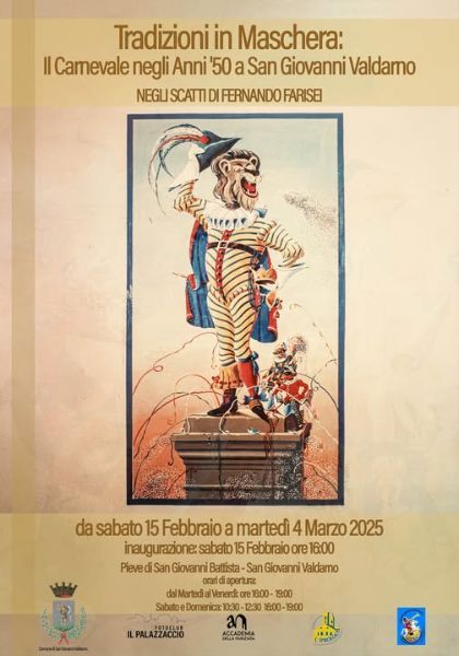 “Tradizioni in maschera: il Carnevale negli anni ’50 a San Giovanni Valdarno negli scatti di Fernando Farisei” . Questo il titolo dell’appassionante mostra fotografica che sarà inaugurata sabato 15 febbraio alle ore 16 nella Pieve di San Giovanni Battista. L’esposizione, realizzata grazie al prezioso contributo di Maria Farisei che ha raccolto le istantanee del padre, offre un'affascinante testimonianza visiva della tradizione carnevalesca della città del Marzocco, attraverso gli scatti inediti di Fernando Farisei. L'esposizione è stata proposta dall’Accademia della Nunziata (di cui Maria fa parte) e dal Fotoclub Il Palazzaccio ed è organizzata dal Comune di San Giovanni Valdarno insieme alle suddette associazioni e in collaborazione con la Pro Loco e l'associazione Carnevale storico sangiovannese.
