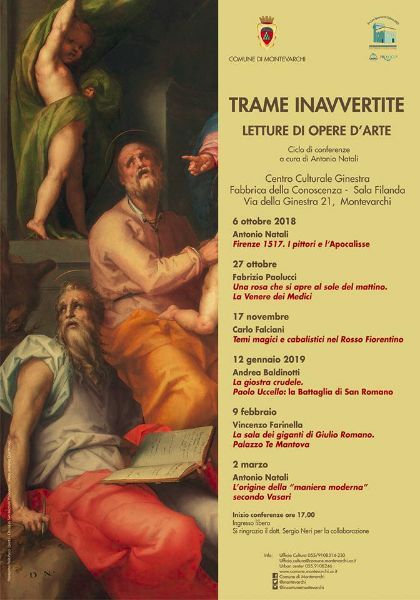 Si tratta di un’iniziativa di grande valore artistico e storico organizzata con il patrocinio dell’Amministrazione Comunale di Montevarchi in collaborazione con l’Associazione Pro Loco Montevarchi Cultura e rappresenta la possibilità di incontrare e ascoltare storici dell’arte di grande livello e di elevata preparazione.