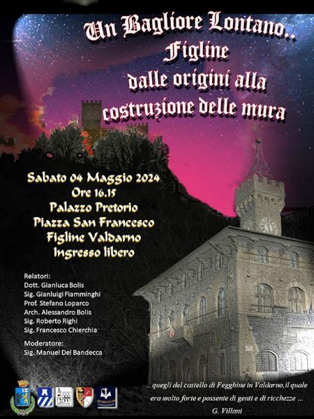 L’appuntamento è per sabato 4 maggio alle 16.15 al Palazzo Pretorio con “Un bagliore lontano: Figline dalle origini alla costruzione delle mura”, organizzato dall’Associazione Porta Senese in collaborazione con Pro Loco Marsilio Ficino, Archeo Club e Associazione Pisa Ghibellina e con il patrocinio del Comune di Figline e Incisa Valdarno.