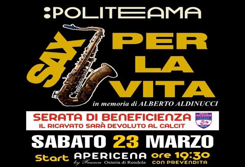 Una serata musicale di beneficenza il cui intero ricavato sarà devoluto al CALCIT, in memoria di Alberto Aldinucci, in programma Sabato 23 marzo 2024 allo Spazio Politema di Montevarchi, che si aprirà con un'apericena a partire dalle ore 19.30