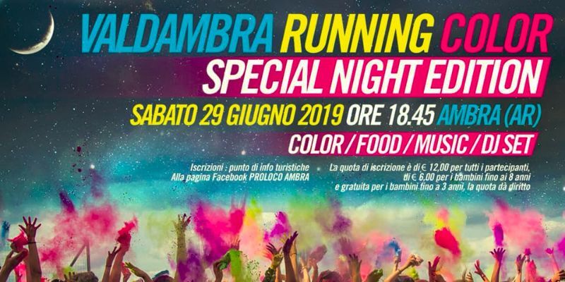 Sabato 29 Giugno ad Ambra, nel comune di Bucine, torna la “Valdambra Running Color - Special Night Edition” giunta, quest’anno, alla sua V edizione.