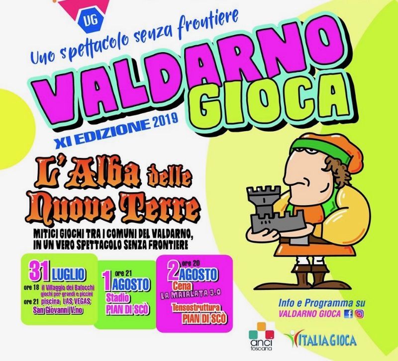 Parte Mercoledì 31 Luglio l’XI edizione di "Valdarno Gioca, la più grande sfida tra i comuni del Valdarno, a suon di giochi... senza frontiere!