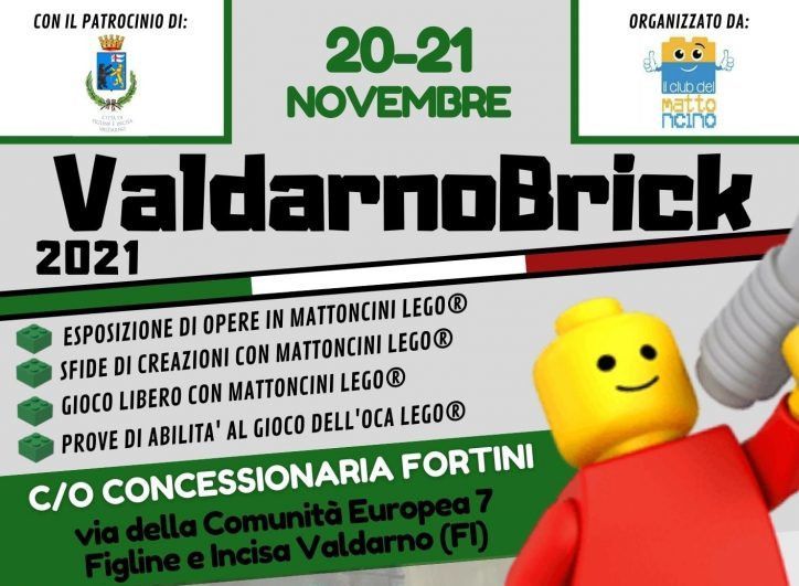 Torna Valdarnobrick, presso via della Comunità Europea,7 a Figline Valdarno, (FI), appuntamento per tutti gli amanti dei celebri mattonicini creativi di plastica, che si svolgera nelle giornate di Sabato 20 e Domenica 21 Novembre.