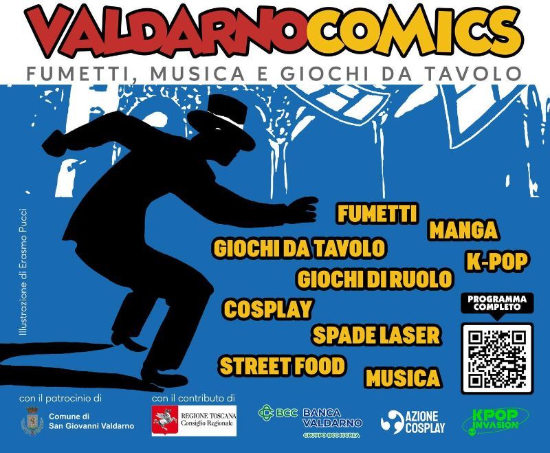 Fumetti, musica, giochi da tavolo, cosplay, spade laser, street food e tantissime attività per tutte le età vi aspettano in un evento gratuito e imperdibile promosso da Pro Loco San Giovanni Valdarno, Ottava Brigata e Cronache di Ruolo
