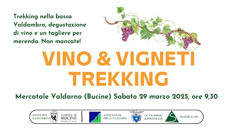 L'associazione per la Valdambra, Sabato 29 Marzo, vi invita ad un Trekking nella bassa Valdambra, degustazione di vino e un tagliere per merenda.