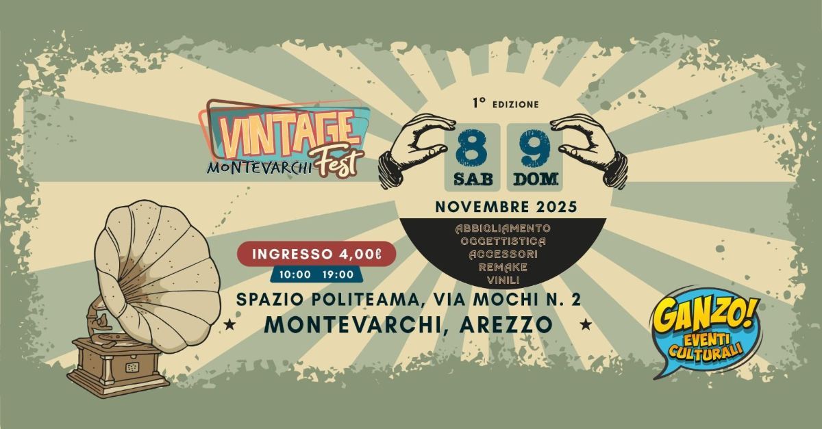 Sabato e Domenica 8v, 9 Novembre , presso lo spazio Politeama, in Via Mochi n. 2 a Montevarchi i migliori espositori vintage per la formula vincente del Festival Vintage nel territorio aretino, per raggiungere tutti gli appassionati del mondo vintage, retrò e second-hand del Valdarno Superiore... e oltre!