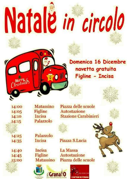 - dalle 15.00 a Incisa Valdarno: animazioni per bambini, con sfilata, arrivo di Babbo Natale e allestimento della sua casa.