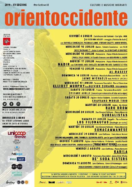 Da Giovedì 4 Luglio a Domenica 11 Agosto, in varie location del Valdarno, si svolgerà la XV edizione di “Orientoccidente”, il Festival delle musiche e delle culture “migranti”, cioè quelle storie di confronto e contaminazione fra tradizioni, generi ed espressioni artistiche diverse.